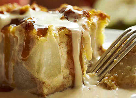 Limited time only! Enjoy warm, apple-filled brioche bread and vanilla cream custard drizzled with sweet caramel and vanilla cream sauces. Treat yourself today!